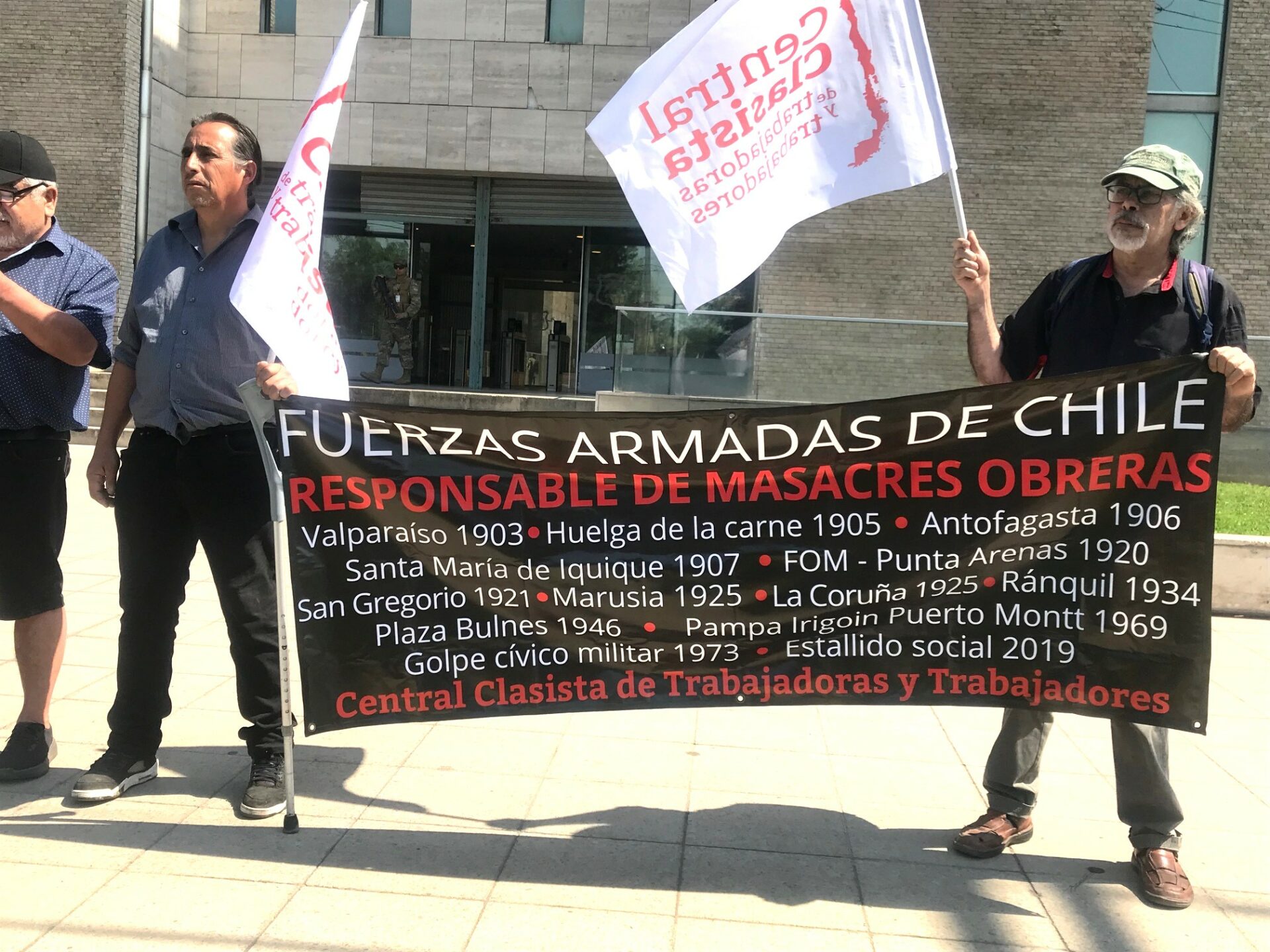 Chile. 116 años desde la matanza de la escuela Santa María de Iquique: sindicalistas realizan plantón en la Comandancia en Jefe del Ejército