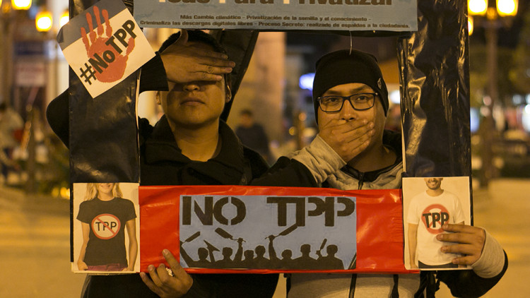 Fotoreportaje: Aldo Vilcapoma Diversas organizaciones políticas, sociales, culturales y ambientales presentes en la ciudad de Huancayo, ciudad del centro del Perú, realizaron una acción colectiva no-violenta en rechazo al Tratado Transpacífico (en inglés: Trans-Pacific Partnership, TPP), en el marco de…