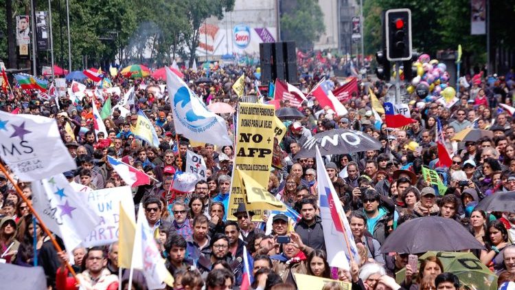 Crece el rechazo al sistema de AFP y la exigencia por un sistema «de reparto, tripartito y solidario» para las pensiones. Hoy en diversas ciudades del país, las manifestaciones multitudinarias repletaron las calles, con cerca de dos millones de manifestantes;…
