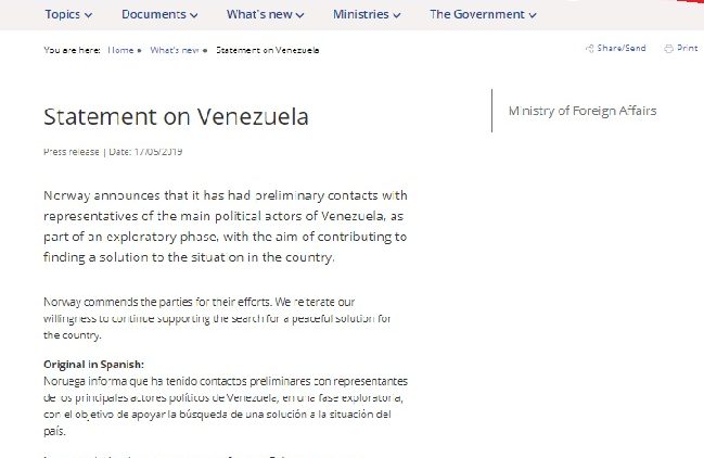 Gobierno y oposición de Venezuela confirman que iniciaron acercamientos en Noruega