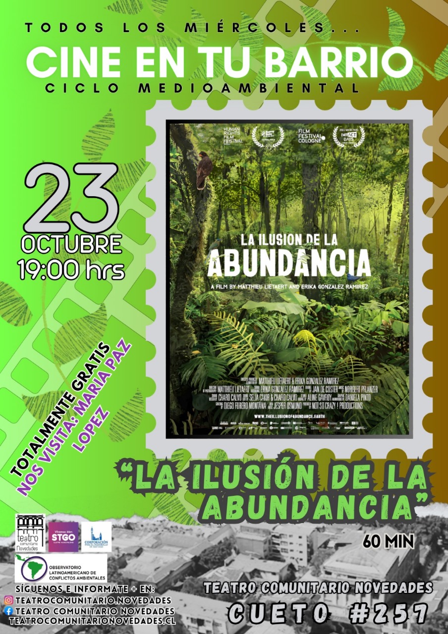 Te invitamos a la proyección del galardonado documental «La Ilusión de la Abundancia», de los directores Erika González Ramírez y Matthieu Lietaert. (@iilusionofabundance) 🎬 Este documental se centra en la lucha y resistencia de Carolina, Bertha y Máxima contra algunas…