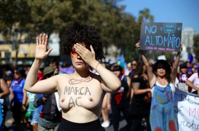 Presidenta del Partido Humanista marchó desnuda llamando a marcar AC en histórica protesta feminista 8M