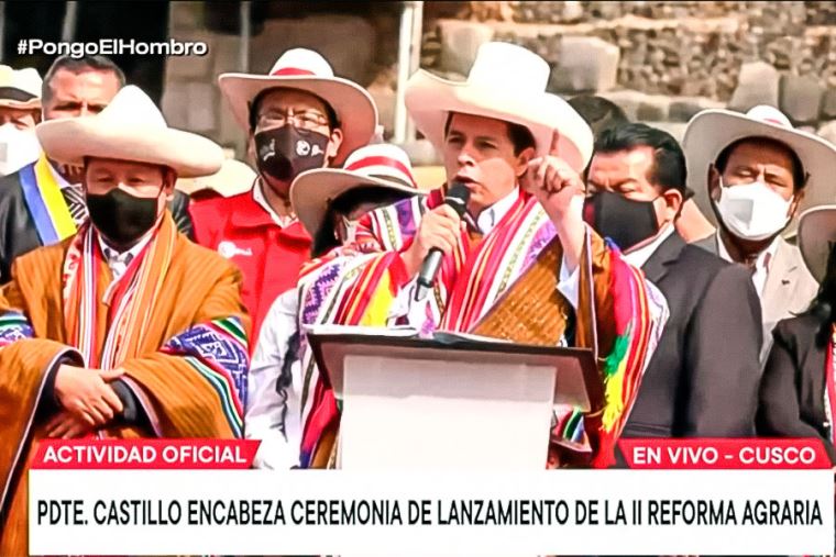 Desde el parque arqueológico de Sacsayhuaman, en el Cusco, el presidente de la República, Pedro Castillo Terrones, anunció que la Segunda Reforma Agraria, que lanza hoy su Gobierno, tiene cinco ejes de trabajo y su desarrollo, aseguró, no busca expropiar…