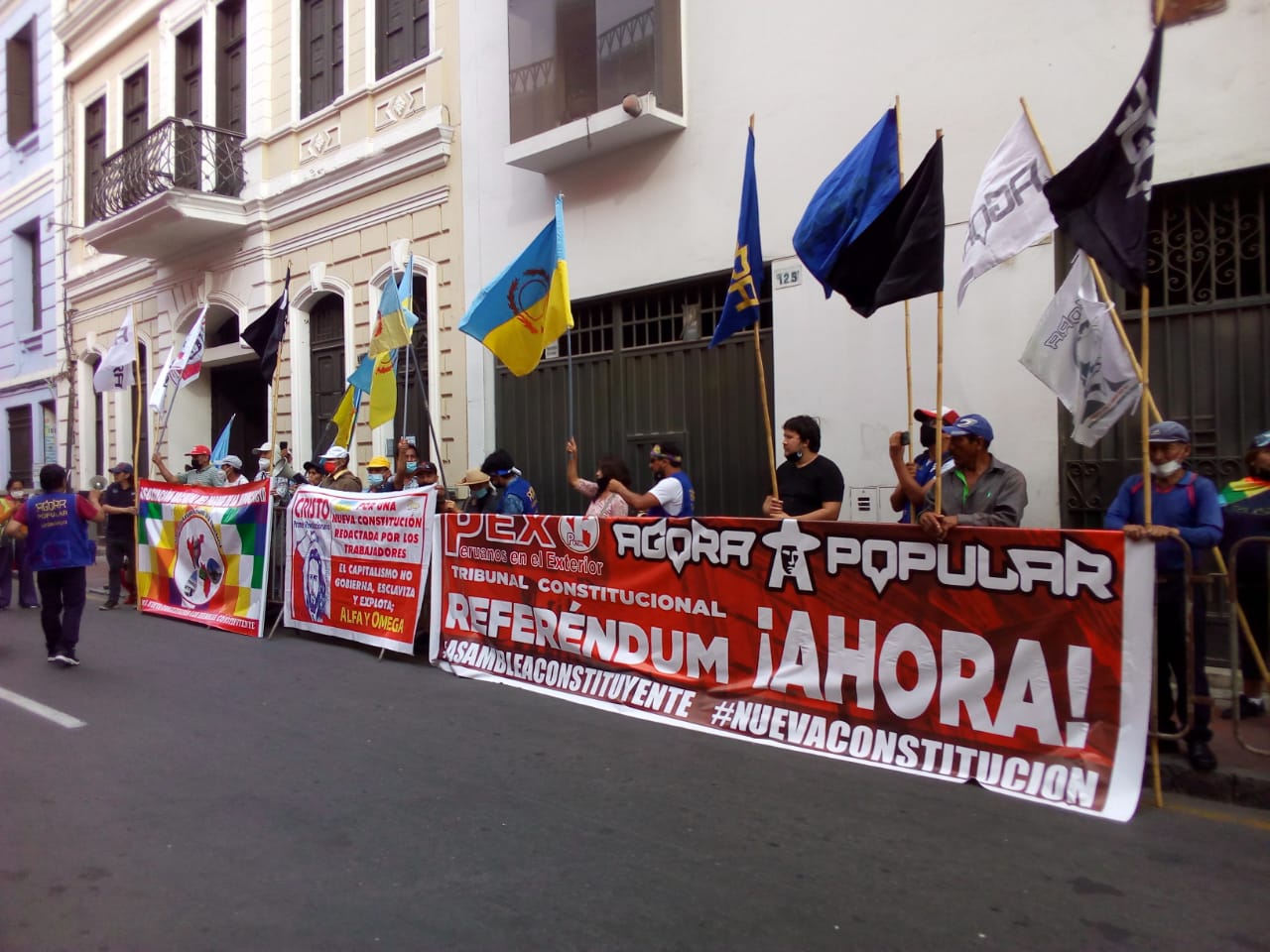 Fuente: CONPYMAP – Coordinadora de Prensa Popular y Medios Alternativos Diversos colectivos  protestaron frente al Tribunal Constitucional (TC) contra el proyecto de ley aprobado en el Congreso que restringe el referéndum para el cambio de constitución. Los colectivos demandan la…