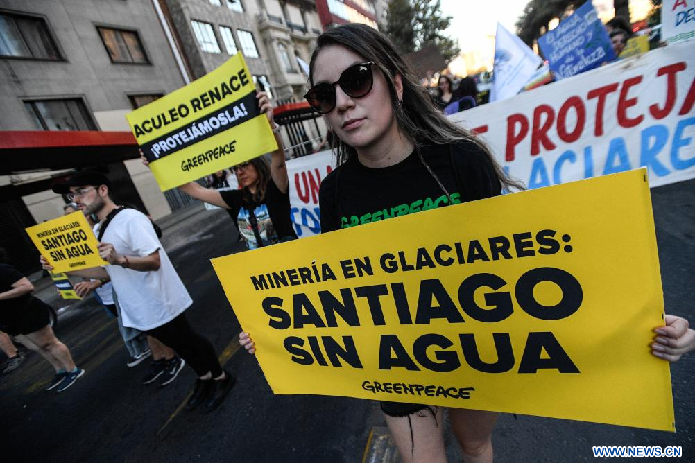 22 de marzo de 2024 marcha en el marco del Día Mundial del Agua, en la ciudad de Santiago, capital de Chile. Personas sosteniendo pancartas durante la marcha en el marco del Día Mundial del Agua, en la ciudad de…