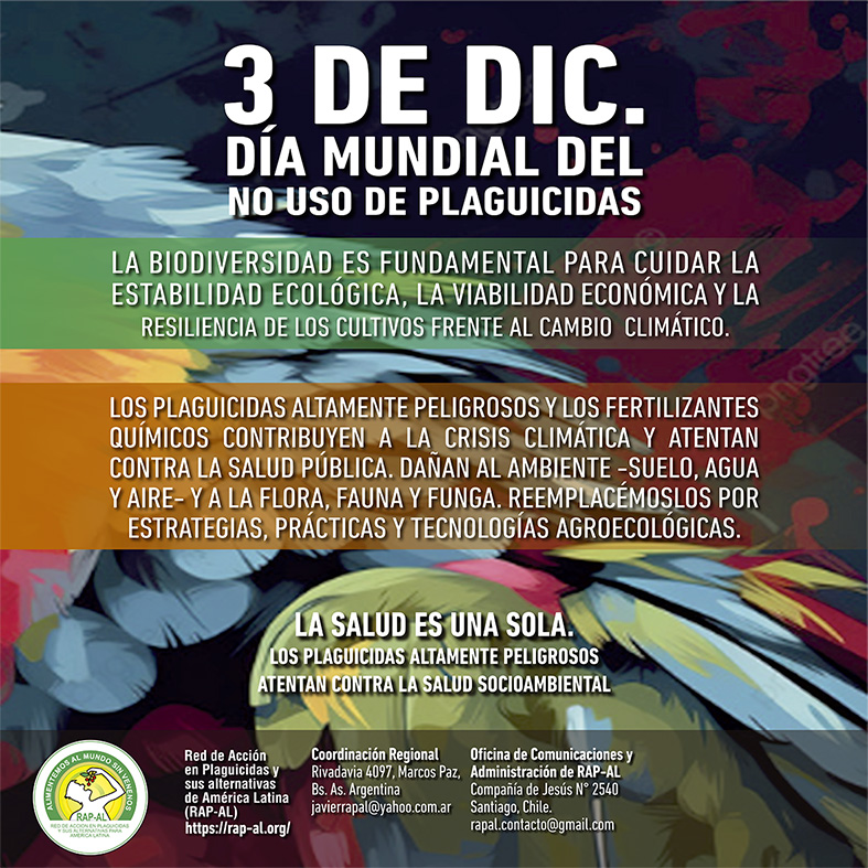 3 de diciembre, Día Internacional del No Uso de Plaguicidas