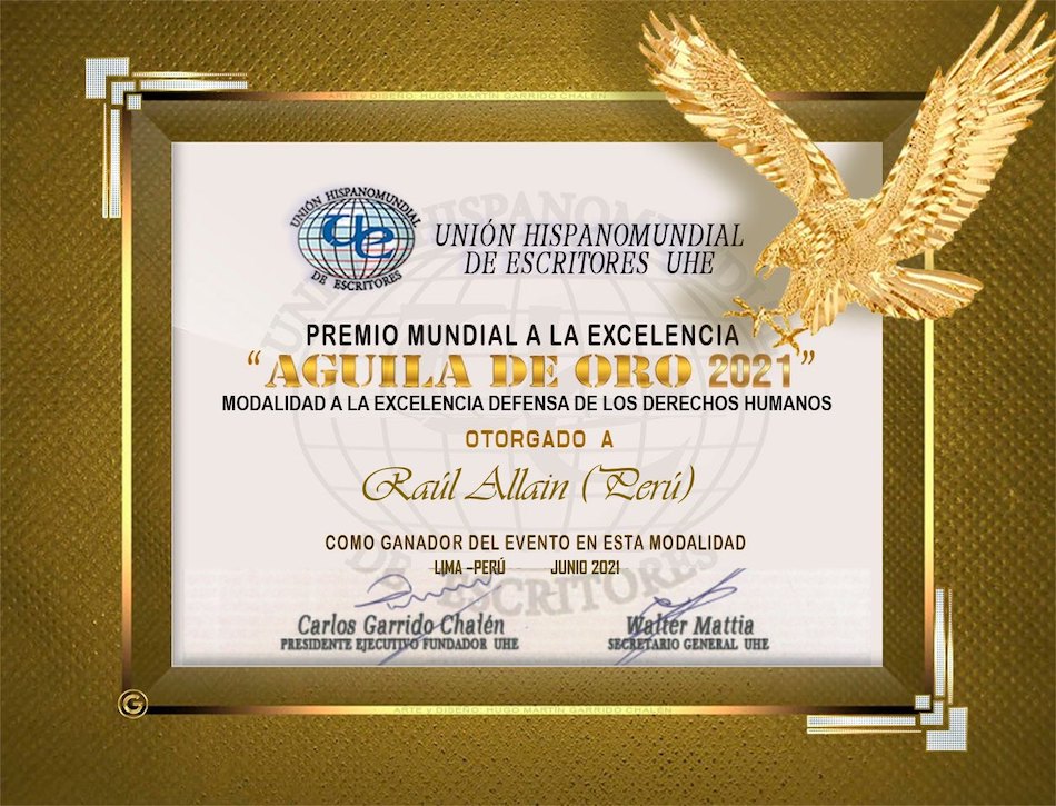 Perú: Sociólogo y escritor Raúl Allain recibe premio mundial «El Águila de Oro»