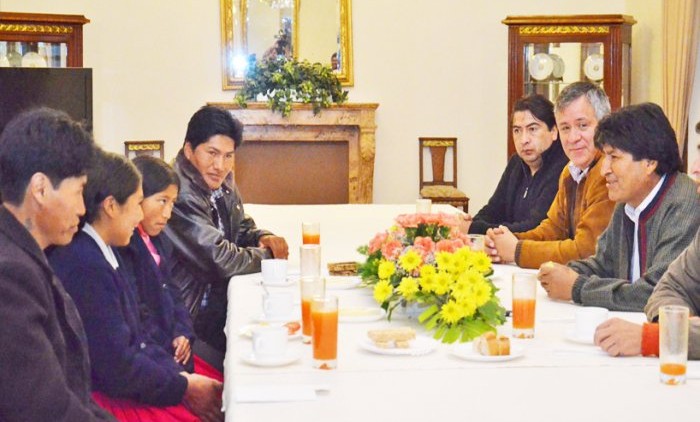 El presidente Evo Morales desayunó el sábado en Palacio de Gobierno con las niñas indígenas Erika Mamani y Esmeralda Quispe, estudiantes de una unidad educativa de la comunidad de Ancoraimes, de la provincia Omasuyos, ganadoras de las olimpiadas científicas que…