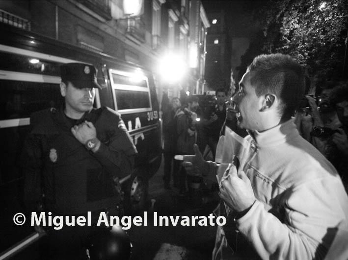 Día 26 de septiembre 2012. Plaza de Neptuno. Madrid. Julio va policía a policía, lleva varias fotografías ampliadas donde se le puede ver abrazando a un hombre muy mal herido, fruto de las cargas policiales indiscriminadas del día anterior en…