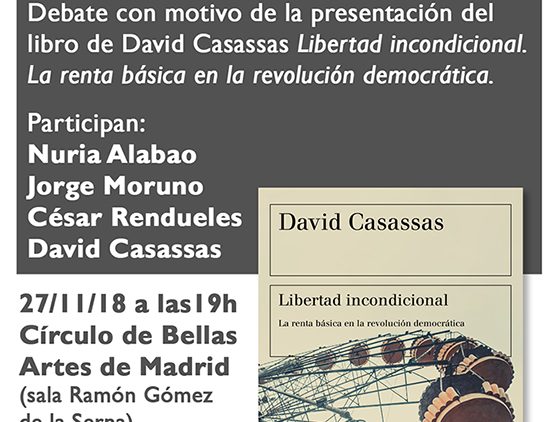 El próximo martes, 27 de septiembre, a las 19 horas, en el Círculo de Bellas Artes de Madrid, el experto en renta básica David Casassas presentará su libro Libertad incondicional. La renta básica en la revolución democrática, al que seguirá…