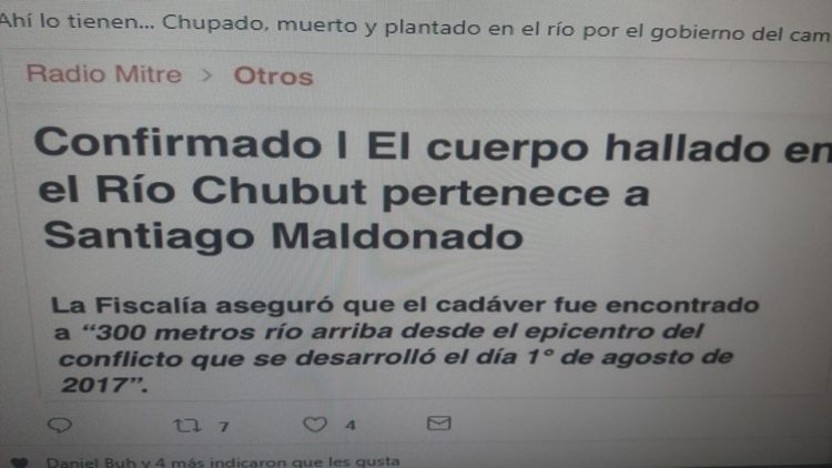Santiago Maldonado: encuentran cuerpo en Cushamen