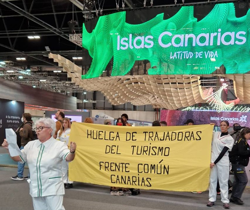 Integrantes del Frente Común y la Diáspora Canaria en Brega se manifiestan en FITUR