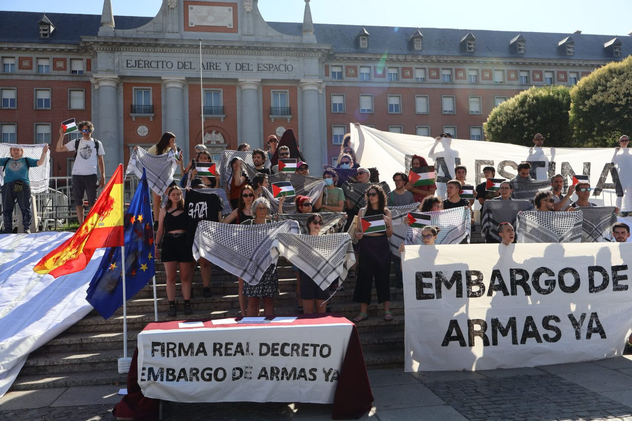 Activistas por Palestina ocupan las escaleras del Ejército del Aire exigiendo el embargo efectivo de armas a Israel