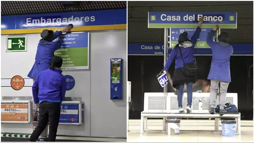 Una original intervención en el Metro de Madrid, que ha customizado el nombre de varias estaciones a través de cambios en los vinilos y carteles de los andenes, calienta motores para la manifestación por la vivienda que se celebra este…
