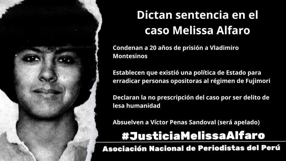 Vladimiro Montesinos Torres, exasesor presidencial de Alberto Fujimori, fue condenado a 20 años de prisión por el crimen de Melissa Alfaro Méndez, periodista del semanario Cambio, asesinada tras abrir un periódico bomba el 10 de octubre de 1991. Por: Asociación…