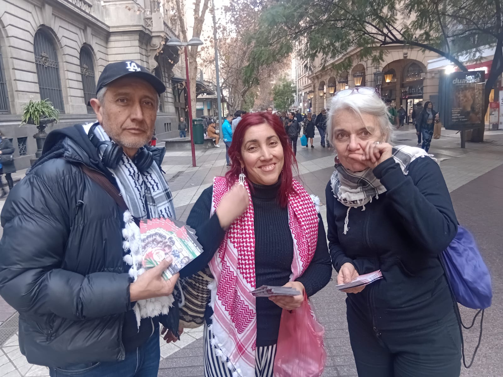 Volanteo relámpago del colectivo La Sandía en el centro de Santiago contra el genocidio en Palestina