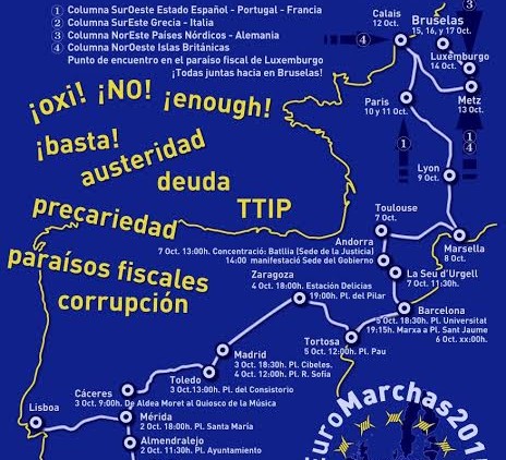 Image : http://euromarchas2015.net Pour une Europe des personnes, « l’Europe du capital , ça suffit! » De plus en plus de personnes, citoyennes de l’Union dénommée Européenne, terminent la journée en ayant perdu leur travail ou en voyant remis en question et…