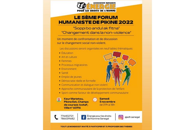 Le Cinquième Forum Humaniste de Pikine 2022 qui a pour thème le changement dans la non-violence, regroupe des humanistes qui s’activent pour agir avec cohérence face à ce système oppressant et violent en partenariat avec différentes organisations sociales.   Le …