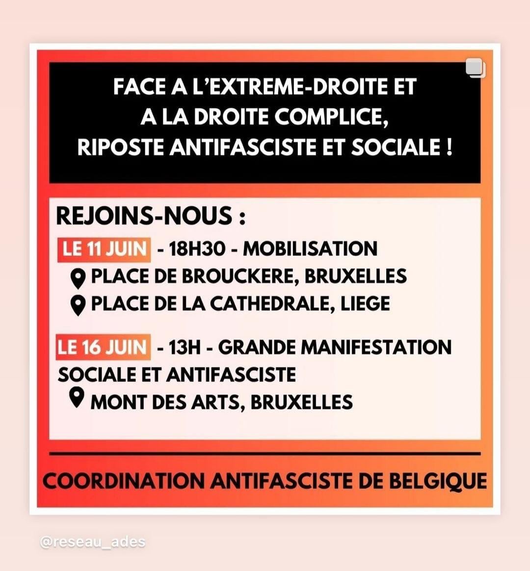 Mardi dernier à Liège et ce dimanche 16 juin 24 à Bruxelles, les citoyens belges sortent dans la rue face à la vague de droite exprimée lors des dernières élections.  Ils  veulent manifester haut et fort leur refus d’une Belgique…