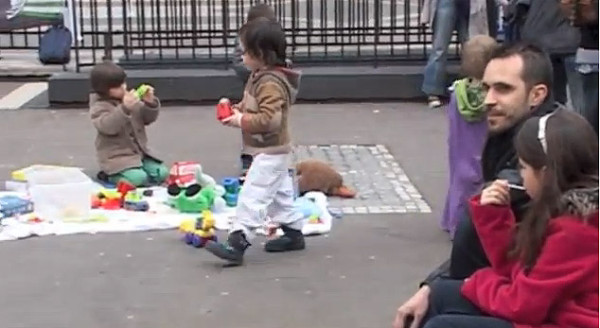 Une heure après, la moitié de la place était semée de petits objets individuels que chacun à tour de rôle déposait…. livres, plantes, vêtements, jouets, aliments, accessoires de vêtements, étagères en plastique, chargeur de téléphone, etc …