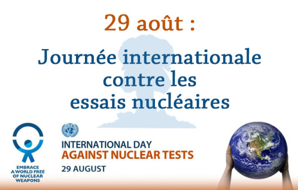 Le 29 août est selon la résolution 64/35, prise le 2 décembre 2009 lors de la soixante-quatrième session de l’Assemblée générale de l’ONU est consacré comme la Journée internationale contre les essais nucléaires. C’est la République du Kazakhstan, qui a été l’initiatrice de cette résolution. La date est très symbolique car elle correspond à la fermeture du polygone d’essais nucléaires de Semipalatinsk, le 29 août 1991, territoire du Kazakhstan oùfurent réalisés pas moins de 2083 essais nucléaires.