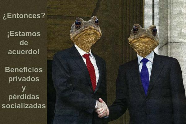 Texte image : « Alors ? Nous sommes d’accord ! Bénéfices privées et pertes socialisées ». Image : Agustisol