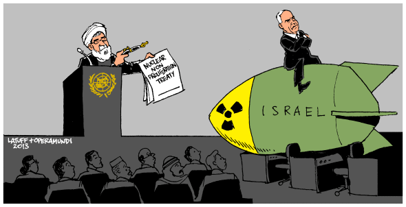 « Pour Simon Peres, «un accord a été signé entre le P5 +1 et l’Iran. C’est un accord intérimaire. Le succès ou l’échec de l’accord sera jugé par des résultats et non par des mots. Je voudrais dire au peuple iranien: «Vous n’êtes pas notre ennemi et nous ne sommes pas le vôtre. Il est possible de résoudre ce problème par la voie diplomatique. Cela est entre vos mains. Rejetez le terrorisme. Arrêtez le programme nucléaire. Arrêtez le développement de missiles à longue portée». Pour sa part, la ministre de la Justice, Tzipi Livni a recommandé de «regarder vers l’avenir: Israël doit agir en étroite coopération avec les Etats-Unis pour renforcer cette alliance stratégique et créer un front politique avec d’autres pays, comme les pays arabes, qui considèrent un Iran nucléarisé comme une menace.» (5)