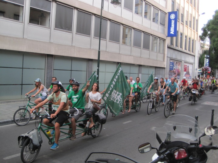 Ce lundi 03 août 2015, les militants d’Alternatiba, partis à vélo depuis Bayonne le 5 juin dernier pour un tour de 5600km, sont arrivés à Bruxelles. Ils veulent sensibiliser les populations au dangers du réchauffement de la planète, promouvoir les alternatives permettant de relever le défi climatique et appeler à la mobilisation pour obtenir un accord international ambitieux lors du sommet de l’ONU sur la climat à Paris en décembre 2015 (COP21).