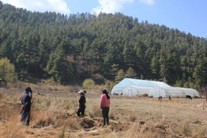 Parmi les bénéficiaires : Tshering Pelden, une agricultrice âgée de trente ans. Elle nous reçoit dans son champ, une casquette vissée sur la tête protégeant son visage du soleil d’hiver. Elle s’est lancée dans l’agriculture biologique il y a sept ans avec six collègues de la vallée de Bumthang, dans le centre du Bhoutan. De cette coopérative informelle, elles ne sont aujourd’hui plus que trois femmes à continuer à cultiver des légumes de manière biologique.