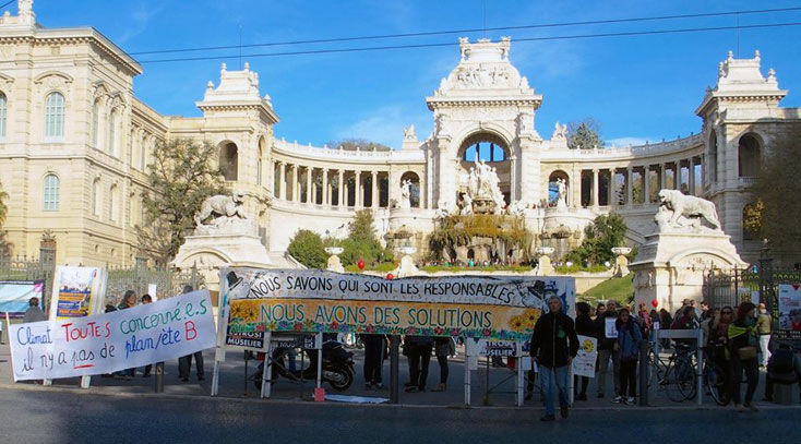 Dimanche dernier, à la veille de l’ouverture de la Cop21, sous le ciel bleu de Marseille et dans une ambiance familiale, plus de 1500 personnes se sont donné la main du Vieux-Port au Palais Longchamp en passant par la Canebière. Le photographe Sergio13 nous offre un regard coloré de cette journée sous le signe de la fraternité en faveur de la justice climatique et de la paix. Cette chaîne humaine fait suite à l’interdiction de manifester en raison de l’état d’urgence instauré après les attentats du 13 novembre dernier.