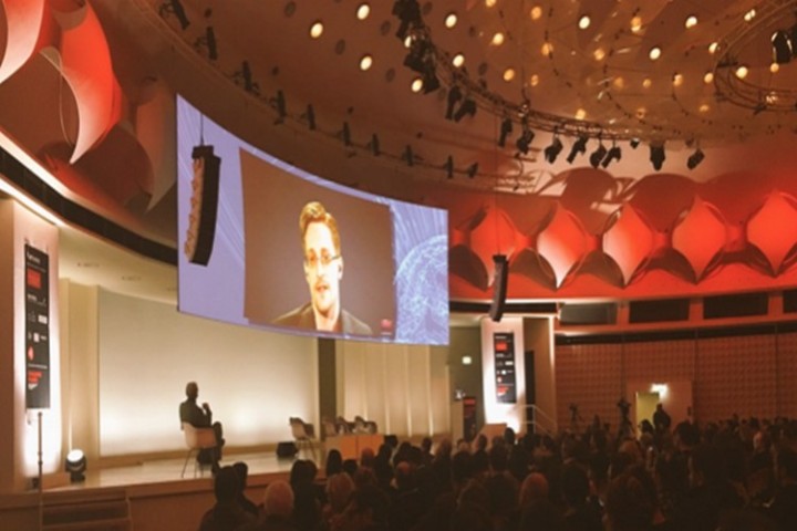 “Il y a beaucoup à dire sur comment lancer nos défis avec des moyens techniques,” disait Edward Snowden lors de la conférence vidéo de Berlin transmise en direct.