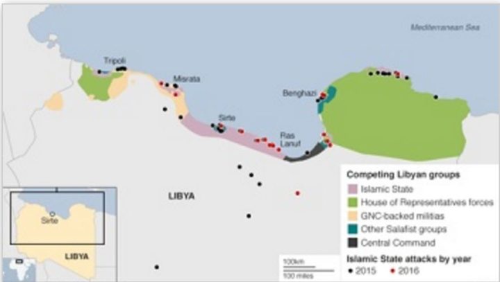 Alors qu’en réalité l’intervention a déjà commencé : des forces spéciales étasuniennes, britanniques et françaises -comme le confirment le Telegraph et Le Monde– opèrent depuis longtemps en secret en Libye pour soutenir « le gouvernement d’unité nationale du Premier ministre Sarraj ».