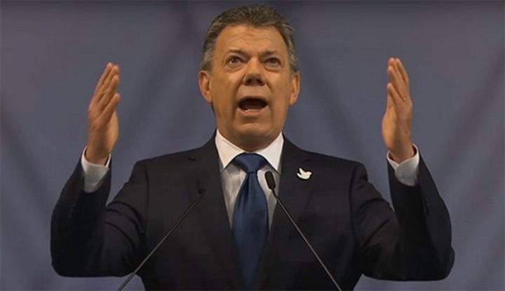 Illustration : Le président colombien Juan Manuel Santos à Oslo lors de la remise du prix Nobel.