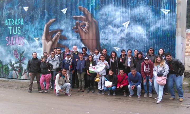 Bogota, 2600 mètres d’altitude, 7,5 millions d’habitants. Dimanche 30 avril, Daniel Libreros, animateur du mouvement écosocialiste, Camila C. (23 ans) et John F. (24 ans), membres du CADTM en Colombie viennent me chercher à 8H30 du matin à l’hôtel au centre de la ville pour rejoindre un quartier populaire accroché à la montagne à 2800 mètres d’altitude. Après 45 minutes de voiture en zone urbaine, on arrive dans un quartier qui se trouve à la limite de la ville et d’une réserve naturelle où naît la rivière Fucha avec des sommets à plus de 3500 mètres.