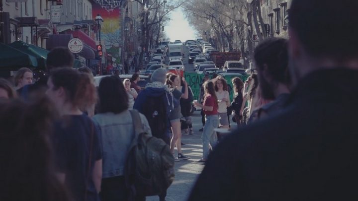 17h03, 28 avril 2017. Il n’aura pas fallu plus de soixante secondes pour que la rue Saint-Denis, une fois physiquement occupée par une cinquantaine de personnes, devienne l’expression sensible d’une critique radicale du monde qui l’organise. La preuve de la possibilité d’un temps libéré de la marchandise, du travail et du capital, elle fut jouie par près d’une centaine de personnes sur plus d’une heure. La vérité du concept du temps libre fut confirmée par le souhait unanime de sa reproduction partout où nos forces peuvent le permettre, par le désir de vivre en négatif de ce qu’on nous promet comme seule possibilité d’existence, par le désir d’en finir avec ce qui nous est seul permis de désirer : une pseudo-vie.