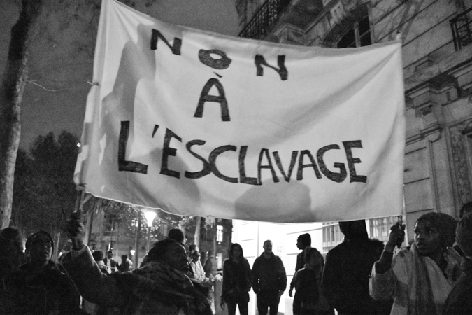 Ce vendredi 24 novembre a eu lieu la manifestation contre l’esclavage devant l’ambassade de Libye, elle a rassemblée quelques centaines de personnes. Parmi les différents intervenants qui ont dénoncé l’impérialisme, les politiques des pays européens et des gouvernants africains, on retient cette phrase :