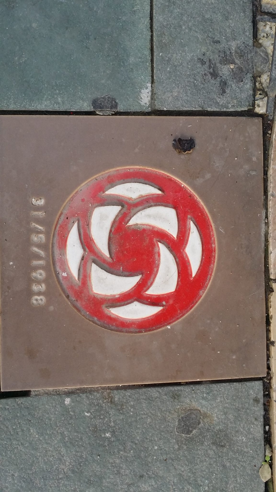 Tuile placée là où l’une des bombes est tombée, et qui cherche à se souvenir de la souffrance des victimes.