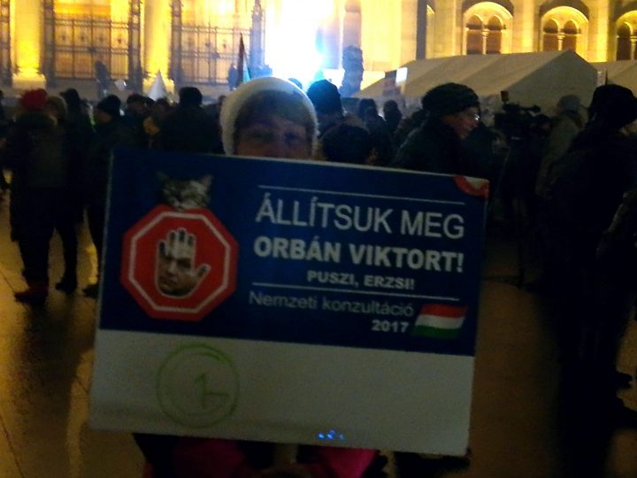 A 20 heures, des dizaines de milliers de personnes se sont rassemblées devant le Parlement dans une foule multicolore, qui a fait tout sauf donner une impression de résignation avec la musique, les tambours et les banderoles créatives. Il était déjà clair pour tout le monde qu’ils avaient une fois de plus perdu contre l’élite politique détachée et arrogante du parti au pouvoir, le FIDESZ. Ce 21/12, on a eu l’impression que l’opposition venait tout juste de s’échauffer et qu’elle avait déclaré une lutte nonviolente au gouvernement antidémocratique, avec beaucoup d’enthousiasme et de vigueur, et bénéficiant du soutien des jeunes. Reste à savoir si le mouvement de protestation aura une force de résistance suffisante. Mais peut-être pourrait-elle tirer un peu d’élan de la vague de protestations qui est arrivée dans plusieurs pays européens (voir aussi : L’Europe va t-elle protester bientôt ?)