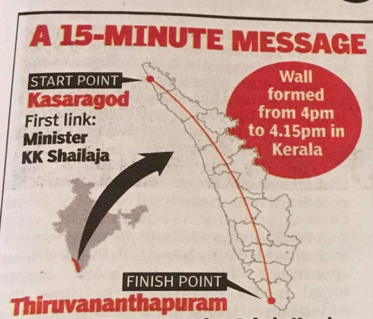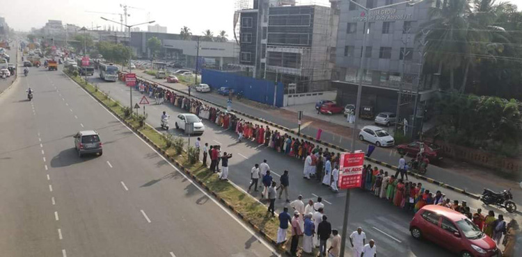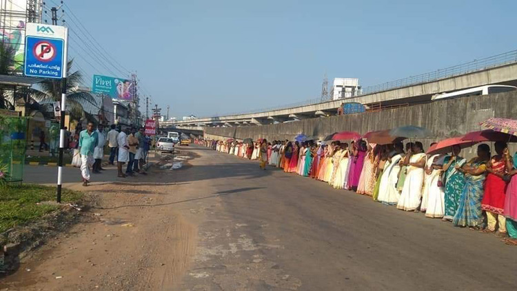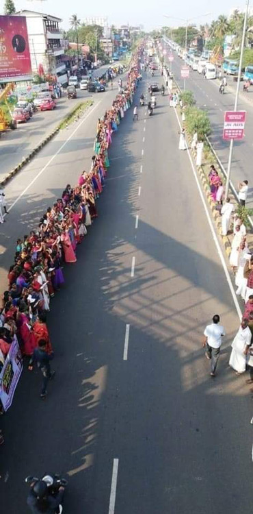 Cette mobilisation, appelée « mur des femmes », a été impulsée par les autorités communistes locales du Kerala. Depuis plusieurs semaines, cet État connaît des protestations répétées en faveur et contre le jugement selon lequel il était illégal d’interdire aux femmes entre 10 à 50 ans, tradition des siècles, d’entrer dans le temple Ayapa de Shamarimala.
