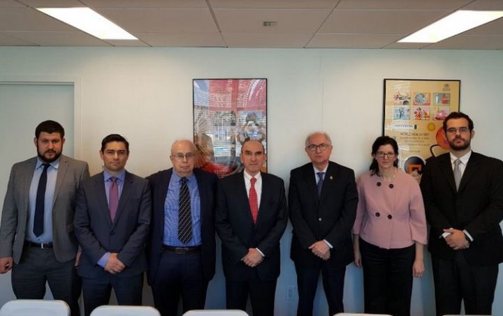 L’envoyé spécial de Donald Trump pour le Venezuela, Elliott Abrams (au centre), réuni avec l’équipe de Juan Guaido à New York le 26 janvier 2019.
