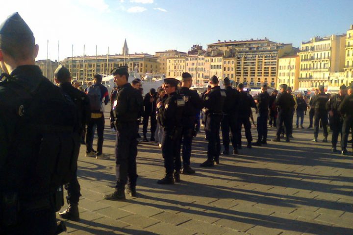 Situation invraisemblable, choquante sur le Vieux-Port de Marseille cette après-midi, douze Gilets Jaunes calmes et tranquilles sont encerclés par la police et parqués derrières des plots de béton d’un côté et un véhicule de l’autre sans pouvoir sortir de ce périmètre et sans que l’on puisse les approcher avec trois mètres entre le cordon de policiers et les plots de béton. Leurs papiers d’identité ont été confisqués pour, soi disant, un simple contrôle d’identité. Au bout de deux heures de l’eau leur a été donné. Impossible d’obtenir une information claire ; ni une garde à vue, ni une interpellation proprement dite. Je parle donc de séquestration arbitraire, nouvelle forme de répression du gouvernement.