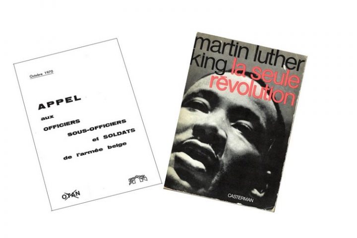 Arrivé à la maison, le livre trouve sa place dans les piles de bouquins à lire un jour peut-être, et pris par les choses à faire du quotidien, je l’oublie. Il y a peu, en mettant un peu d’ordre dans la « bibliothèque », entre la page 88 et 89, au chapitre 4 intitulé : « La non-violence et la réforme de la société », je découvre un tract de 1970, signé Jean Van Lierde, intitulé « Appel aux officiers, sous-officiers et soldats de l’armée Belge ».