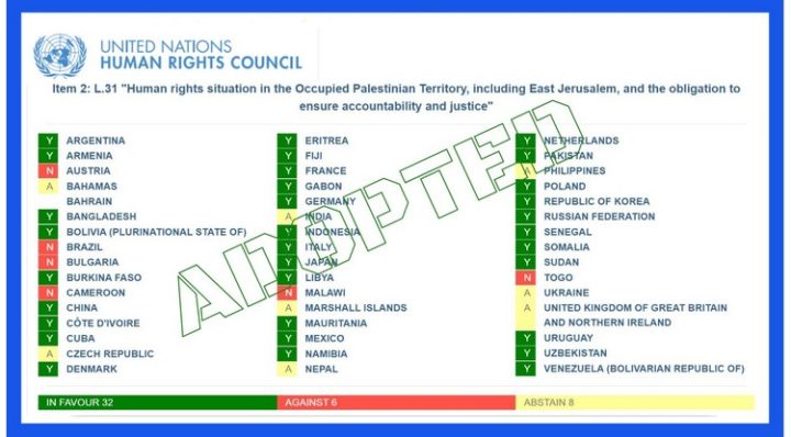 Durant les derniers jours de sa session annuelle à Genève, le Conseil des Droits de l’Homme des Nations unies a adopté la résolution (A/HRC/46/L.31) intitulée « Situation des droits de l’homme dans le territoire palestinien occupé, y compris Jérusalem-Est, et obligation de garantir les principes de responsabilité et de justice » (voir le texte intégral).