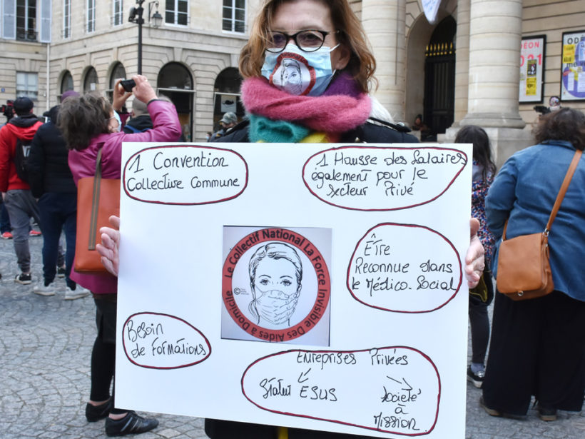 Anne Lauseig est la fondatrice du Collectif National La Force Invisible des aides à Domicile. C‘est lors du 1er confinement qu’elle a ressenti la nécessité de créer ce collectif, pour faire face à la solitude, aux peurs et à l’absence de considération des pouvoirs publics et des structures les laissant seules et démunies. Elle a pris conscience aussi de la force et de l’importance de leur métier, indispensable et irremplaçable.