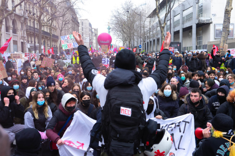 Ce Jeudi 27 Janvier, de nombreux syndicats appelaient à la grève et à défiler dans les rues parisiennes pour défendre les emplois et obtenir une augmentation des salaires. Les ballons de la CGT, FO, FSU, et ceux de l’union syndicale Solidaires flottaient dans les airs. Les syndicats étudiants comme Fidl et MNL affichaient fièrement leurs banderoles et scandaient : « Blanquer, démission ! »