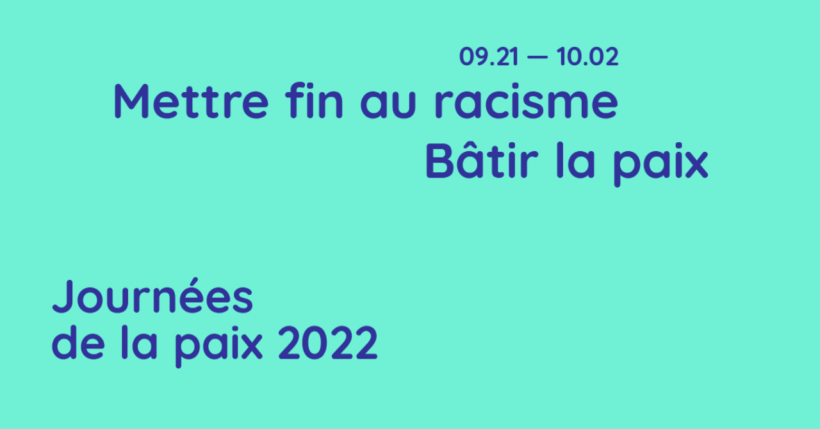 « Agir pour l’égalité : mettre fin au racisme, bâtir la paix est la thématique des Journées de la paix 2022. Depuis 2021, nous avons fait le choix d’une thématique pérenne et mobilisatrice qui incite les gens à réfléchir et à agir. Si nous voulons Agir pour l’égalité, il est nécessaire d’abord de nommer et de reconnaître les enjeux, les problèmes, les contraintes qui exacerbent les inégalités, pour ensuite proposer et mettre en place des initiatives concrètes. Les Nations Unies nous proposent en 2022 de mettre fin au racisme dans l’objectif de construire une paix durable.