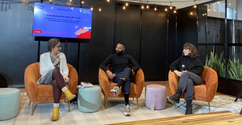 Telles étaient les questions et thèmes discutés par les quatres auteurs québécois: Mathieu Bélisle (Ce qui meurt en nous, chez leméac), Denise Desautels (L’Angle noir de la joie chez, Noroît), Catherine Ocelot, (Symptômes chez Pow Pow) et Philippe Néméh-Nombré (Seize temps noirs pour apprendre à dire Kuei, chez Mémoire d’encrier) lors d’une table ronde organisée dans le cadre du salon du livre de Montréal.