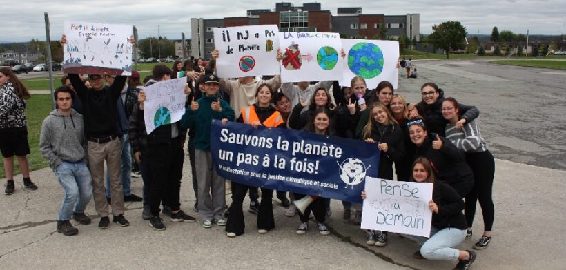 L’ensemble des élèves de la Cité-école Louis-Saint-Laurent à East Angus ont effectué une marche pour la lutte aux conditions climatiques dans les rues de la municipalité et remis à la mairesse, Lyne Boulanger, une déclaration de la situation d’urgence climatique signée par plus de 400 élèves et membres du personnel de l’école.