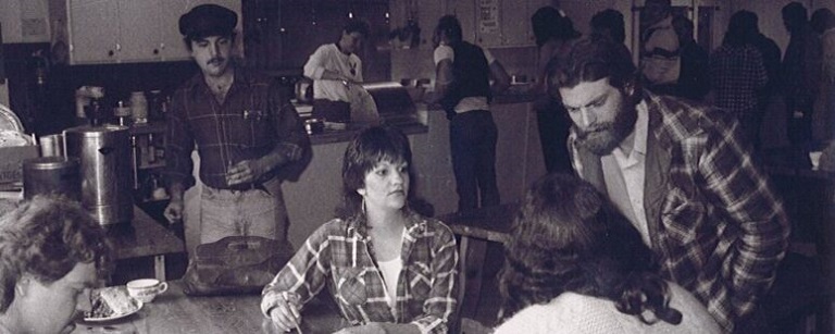 En 1982, les jeunes sans emploi de 18 à 29 recevaient 142 $ par mois de l’aide sociale pour se loger, se nourrir et se vêtir. Ils cognaient aux portes des églises pour quelques dollars ou un sac de nourriture. On sonnait l’alarme auprès du Service Diocésain de Pastorale Sociale, qui établit un service d’urgence financier, mais temporaire. Puis, on réunissait le monde du communautaire et religieux pour fonder la soupe populaire : La Chaudronnée de l’Estrie inc. Les Chevaliers de Colomb du conseil 530, servaient un premier repas le 17 novembre 1982, au 268, rue Court. Puis deux fois par semaine. Les Curcilistes préparaient deux repas spaghetti.