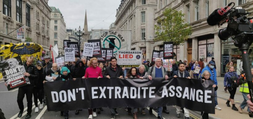 Comme toujours, toute initiative créative est la bienvenue, qu’il s’agisse de flash mobs (N.d.T.: une flash mob est une représentation soudaine, suivie d’une dispersion rapide), de débats ou de projections de films sur le sujet, mais en plus du ton « carnavalesque », nous transmettons une demande de John Rees, organisateur de la chaîne humaine du 8 octobre à Londres : exercer une pression internationale sur les gouvernements britannique et américain en signant la pétition demandant l’arrêt de l’extradition de Julian Assange vers les États-Unis et une demande au président Biden d’abandonner les charges contre un journaliste qui n’a fait que son travail. De cette manière, des milliers de signatures peuvent s’ajouter à celles déjà recueillies.